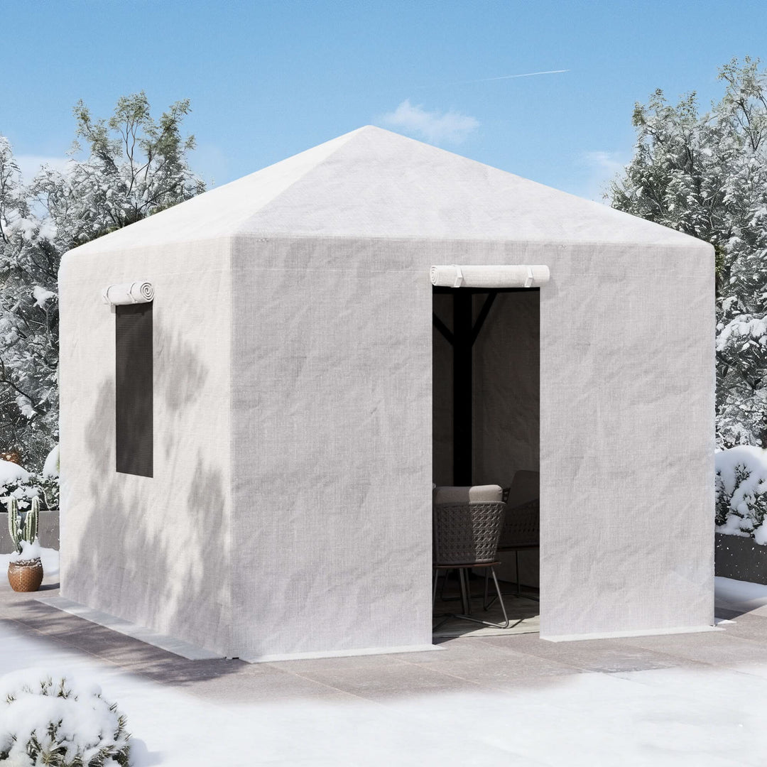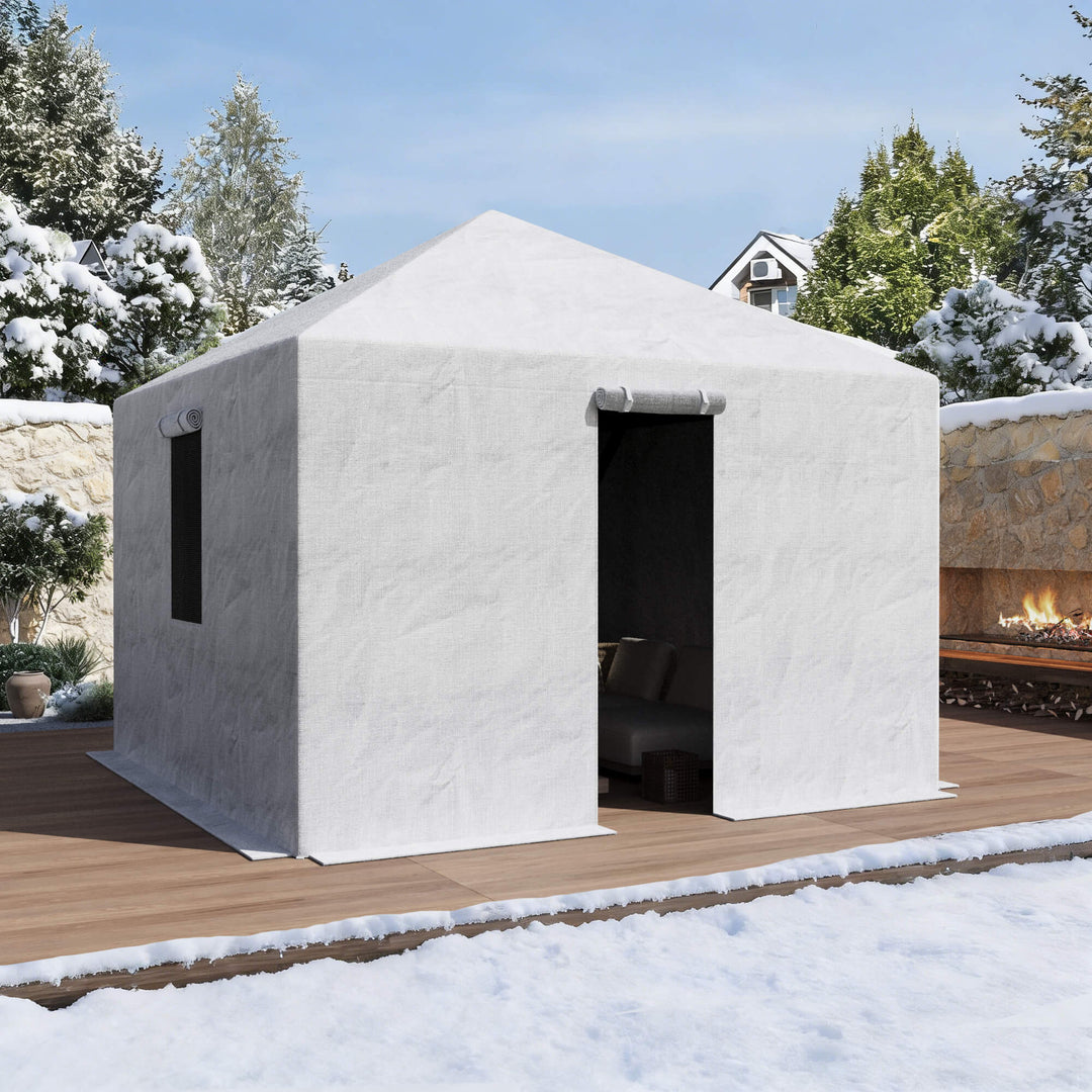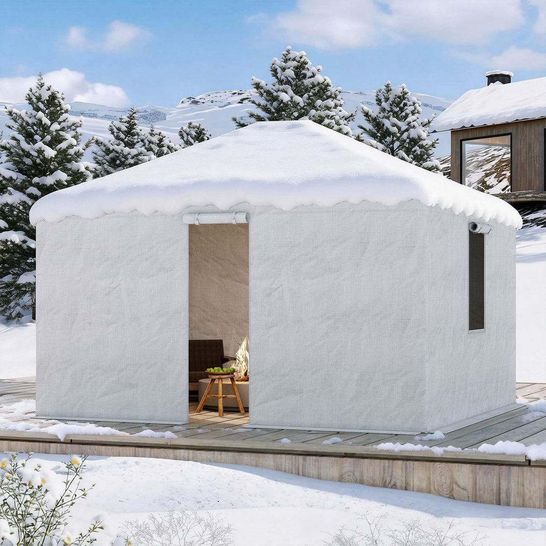 Modern Shade heavy-duty winter gazebo covers in multiple sizes. 200G waterproof PE, windproof design, mesh windows. Fits hardtop gazebos. Easy install kit included.