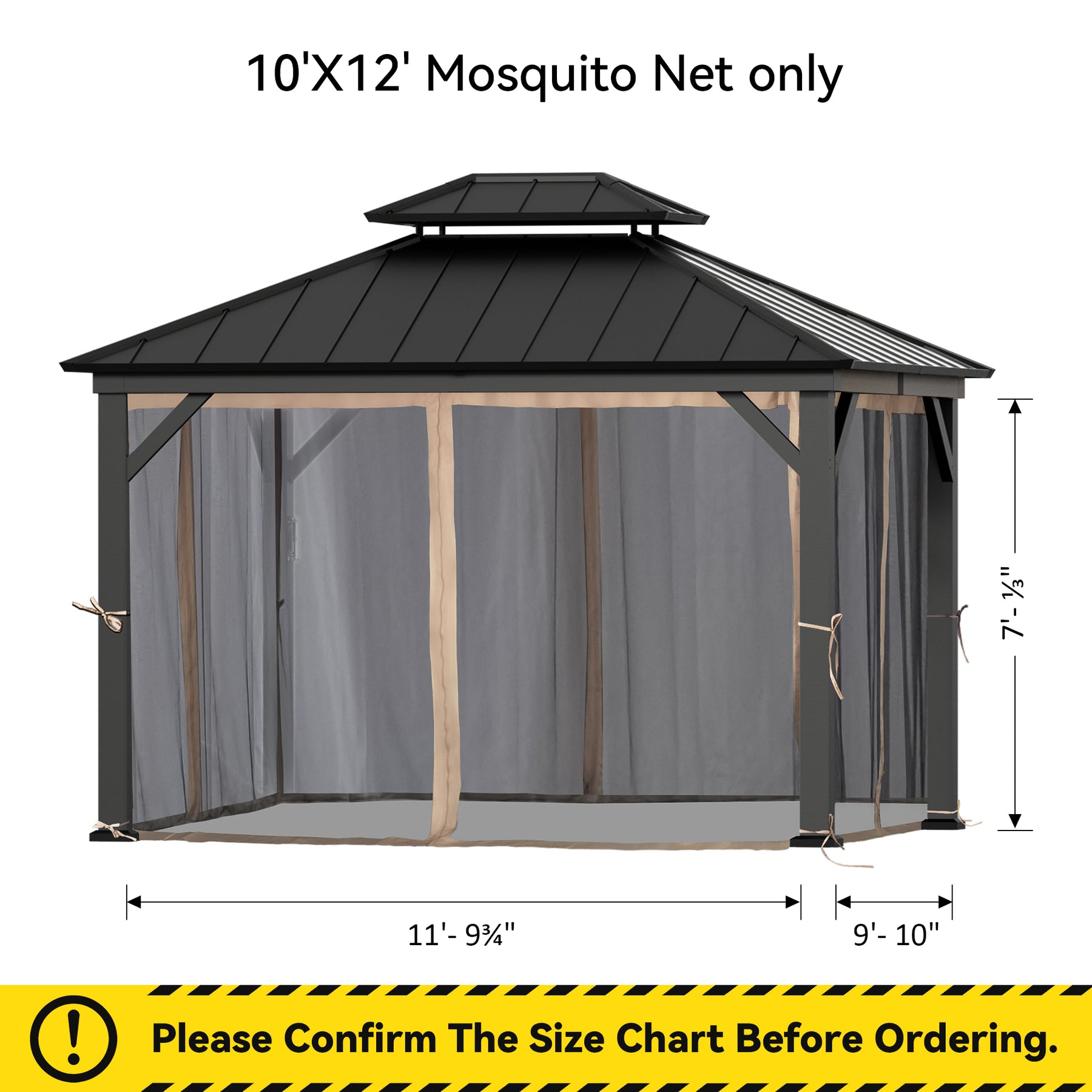 10x12 Mosquito Netting for Gazebo with Two-way Zipper