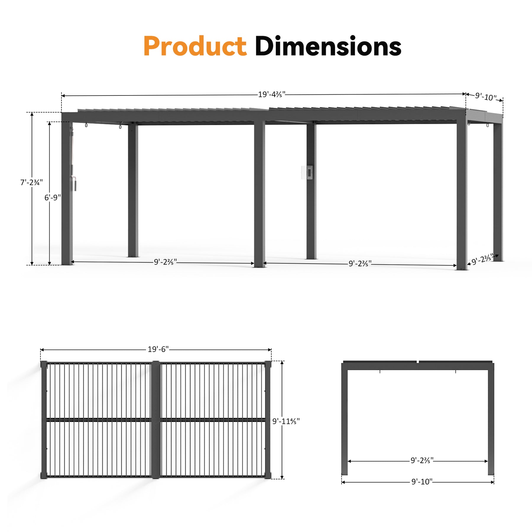 10x20 Aurora Metal Pergola with Adjustable Louver