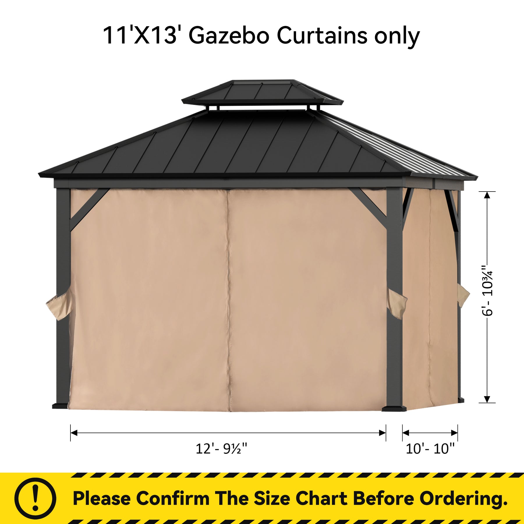 11x13 Privacy Curtain for Gazebo with Two-way Zipper