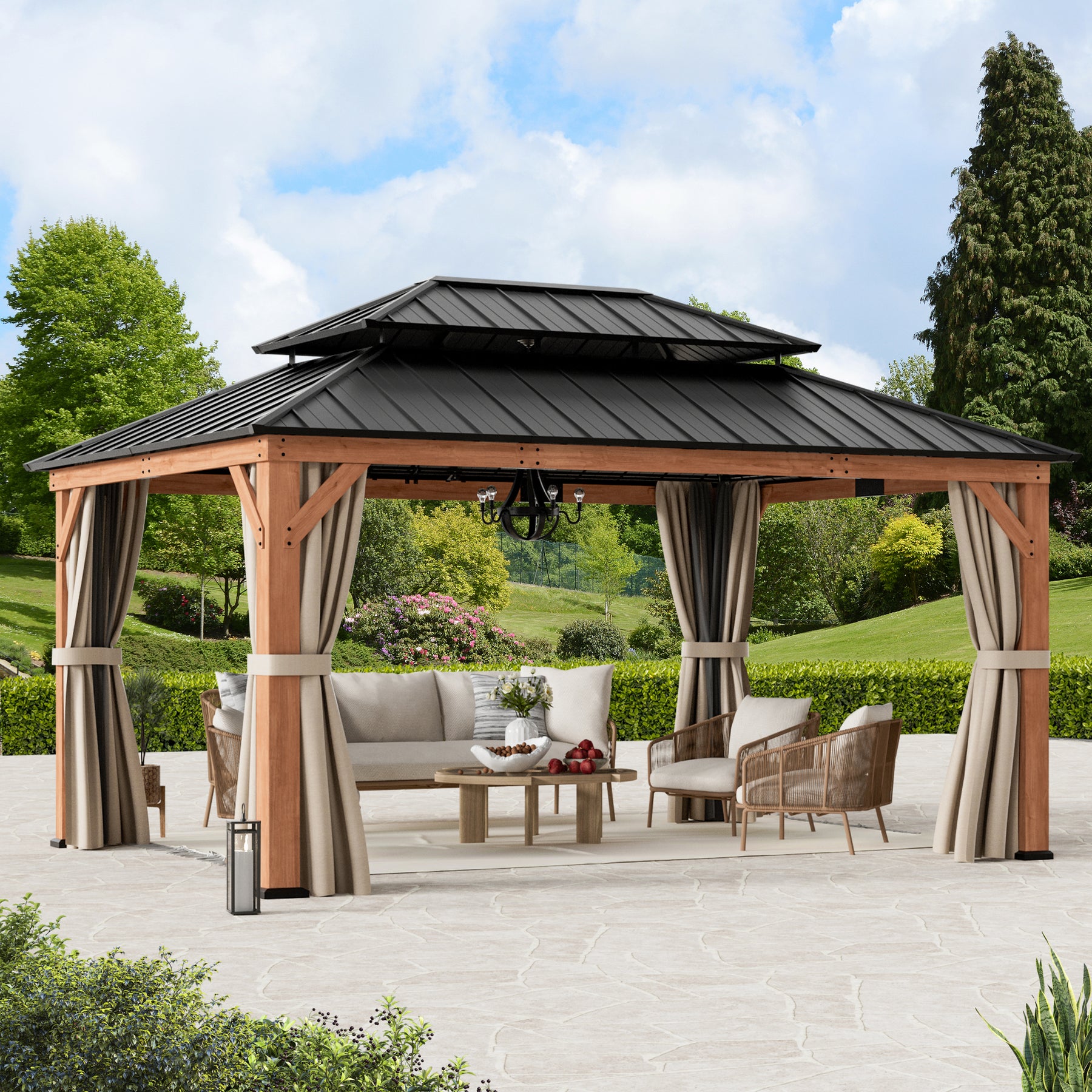 12x16 Rosewood Cedar Hardtop Gazebo