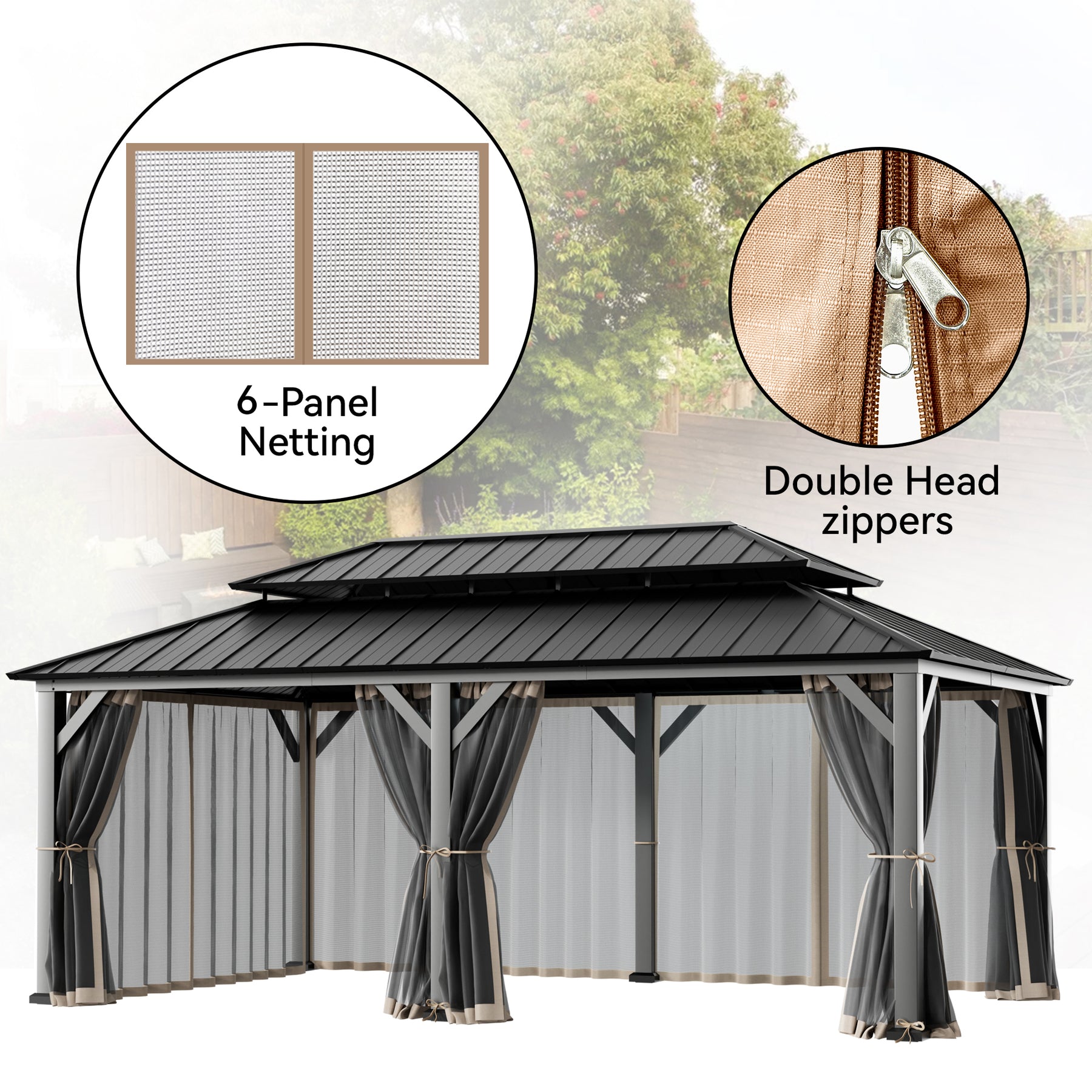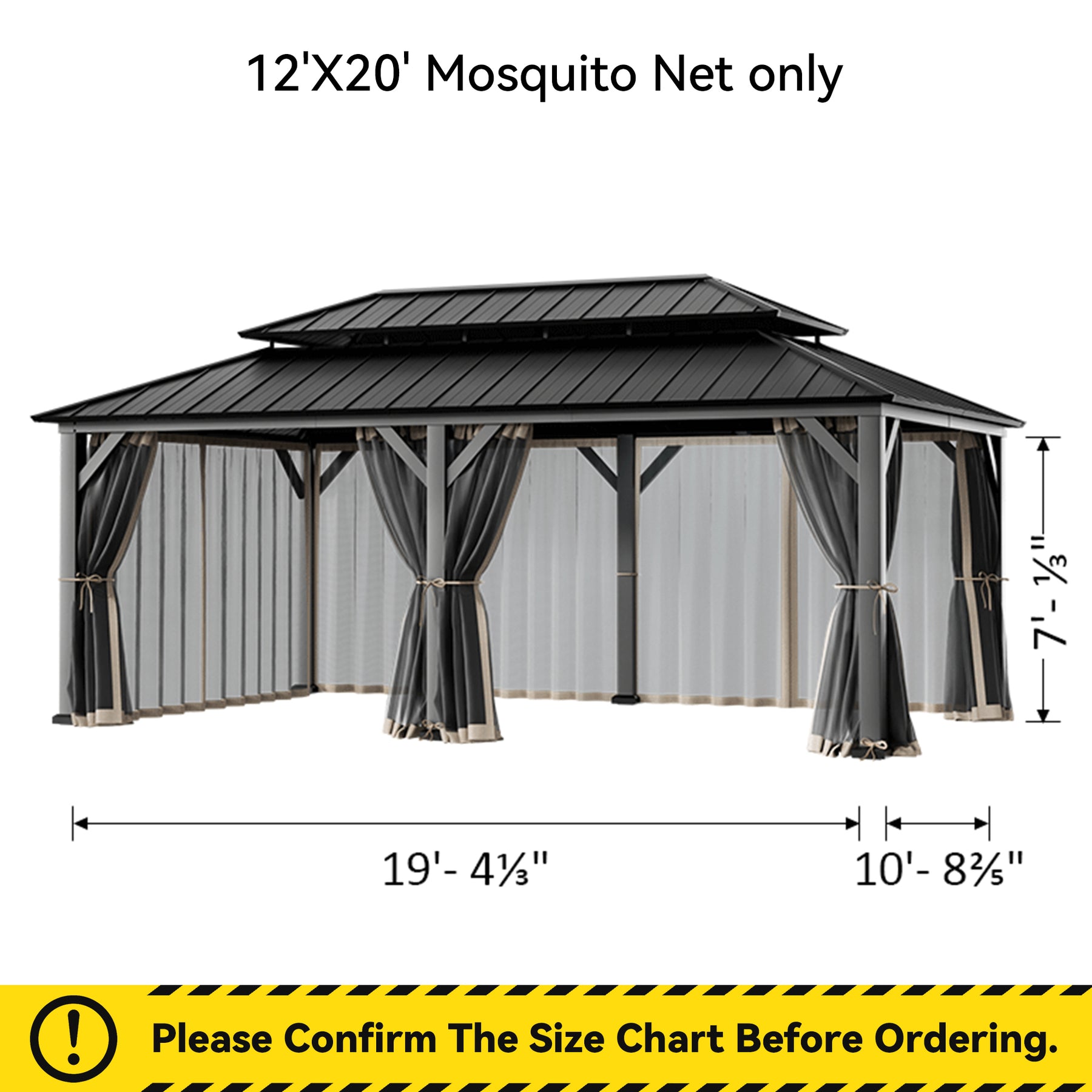 12x20 Mosquito Netting for Gazebo with Two-way Zipper