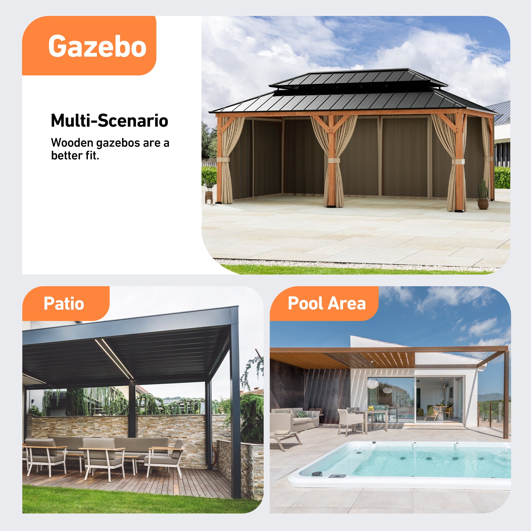 12x20 Privacy Curtains & Mosquito Netting Set for Cedar Wood Gazebo