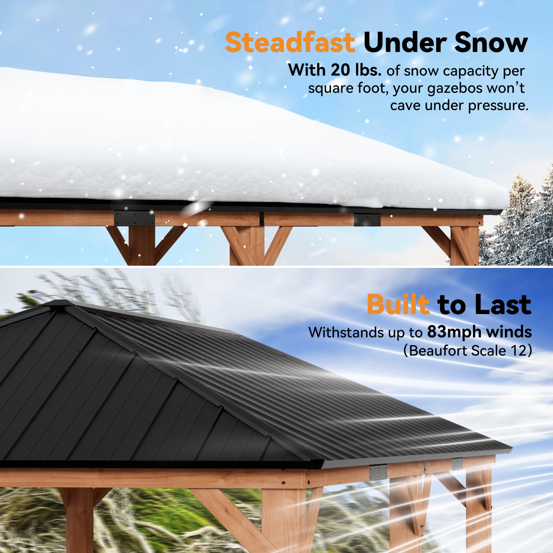 Snow Load Capacity: 10–20 lbs/ft²