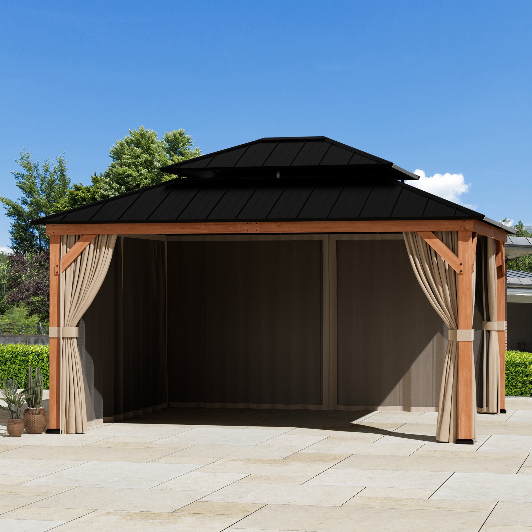 13x15 Privacy Curtains & Mosquito Netting Set for Cedar Wood Gazebo