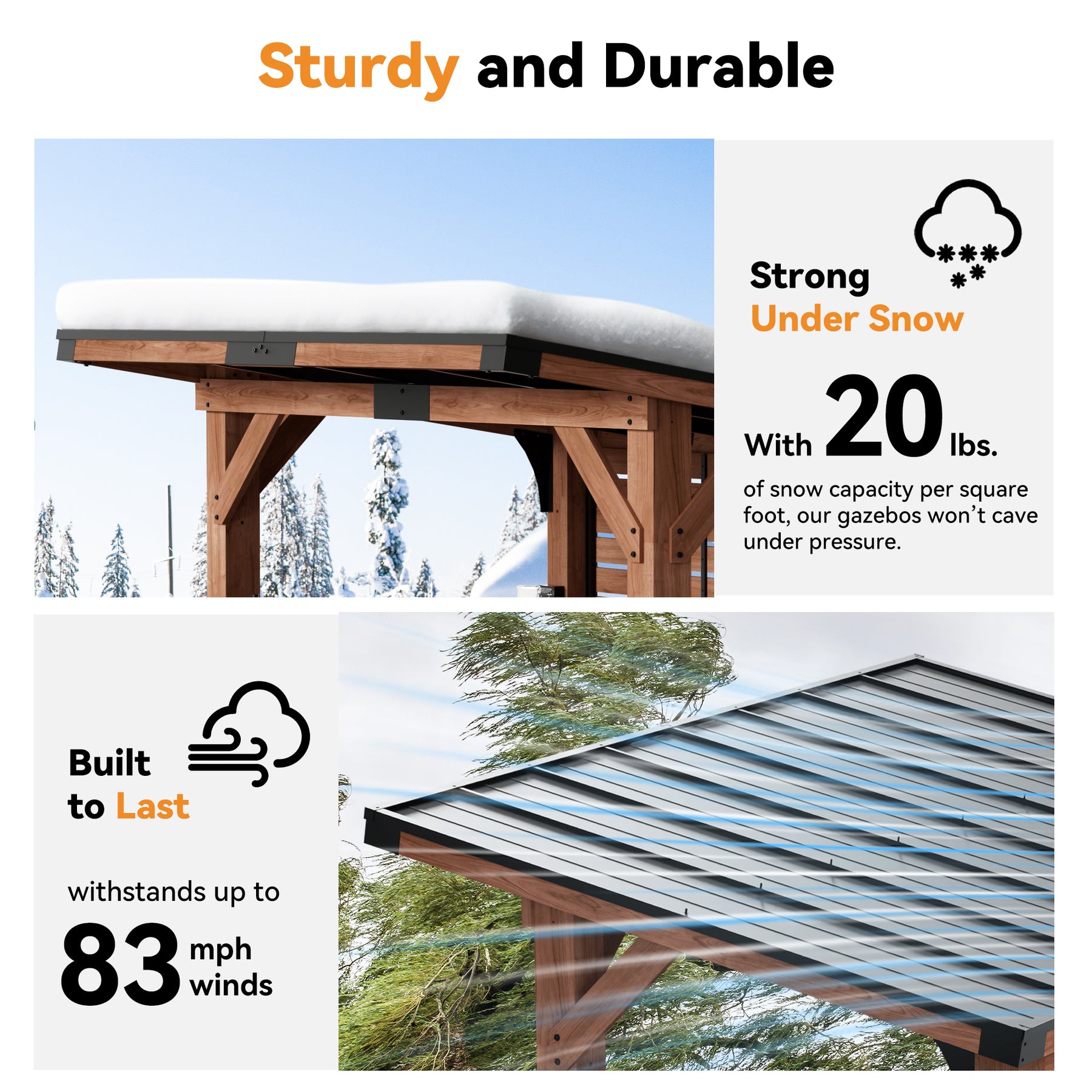 Snow Load Capacity: 10–20 lbs/ft²