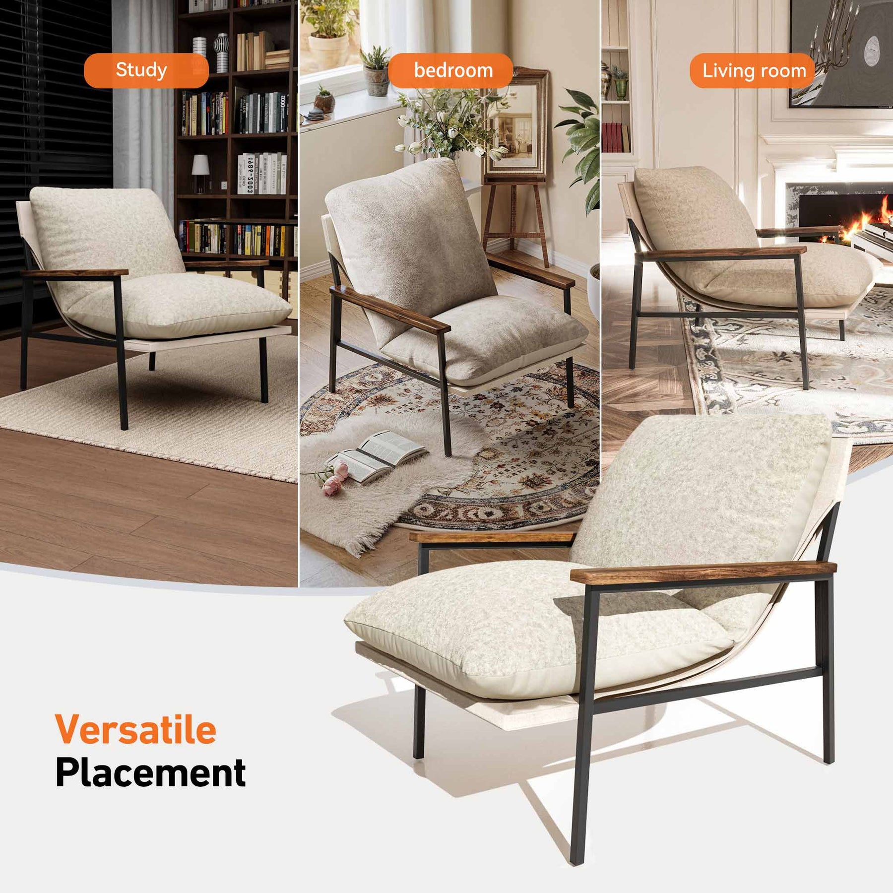 Mid-century Modern Accent Chair with Wooden Arms and Dual-Sided Cushion