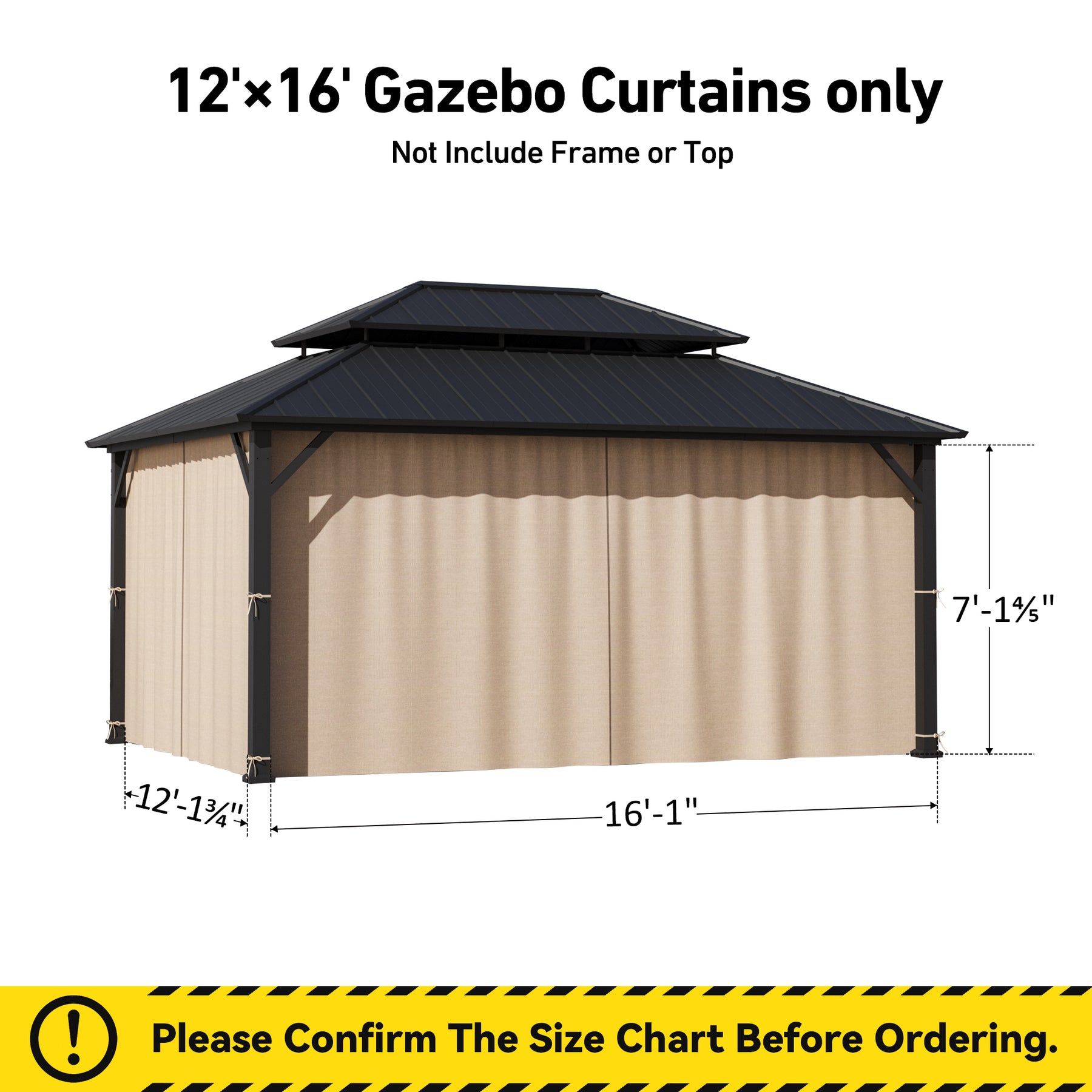 Yarn-dyed 12x16 Privacy Curtain for Gazebo with Zipper